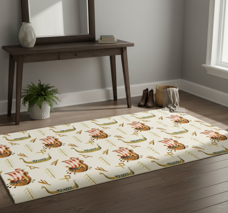 Referencia: R21981Descubre la alfombra vinílica naturaleza barco vikingo, una pieza única que transforma cualquier espacio en un mundo de fantasía. Con un diseño vibrante que evoca la aventura de los antiguos vikingos navegando por mares lejanos, esta alfombra presenta ilustraciones de barcos de estilo nórdico rodeados de un entorno natural impresionante. Su colorido y detallado diseño no solo cautiva la mirada, sino que también añade un toque de alegría y creatividad a tu hogar.