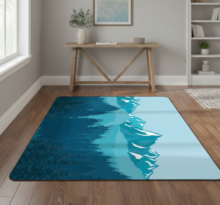 Alfombra vinílica naturaleza paisaje azul y verde