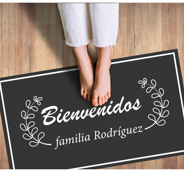 Esta alfombra personalizada presenta un diseño único de dos ramas de olivo que dan la bienvenida. Disfrute de la oportunidad de cambiar el aspecto de sus suelos en cualquier momento con este producto de alta calidad elaborado con los mejores materiales disponibles en el mercado.