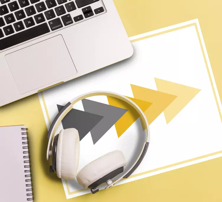 Descubre el Mouse pad textura motivo de flechas dinámicas, un complemento que combina un diseño minimalista y moderno. Su gráfica presenta una ilustración fascinante que mezcla triángulos y flechas en tonos amarillos, grises y negros, creando un efecto geométrico que aporta un toque nórdico y elegante a cualquier espacio. Este mouse pad no solo es funcional, sino que también es una pieza artística que transforma tu entorno de trabajo en un lugar inspirador.