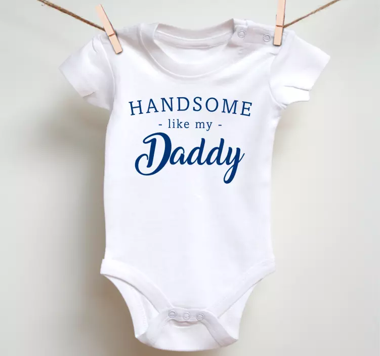 Referencia: T5450Este encantador atuendo presenta la frase 'Handsome Like Daddy', perfecto para celebrar el vínculo entre los padres y sus pequeños. El diseño combina tipografía juguetona con un aspecto clásico, lo que lo convierte en una opción encantadora para cualquier ocasión.