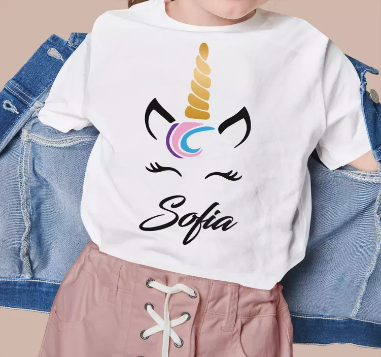 Referencia: T5163Este encantador diseño presenta un unicornio juguetón con un cuerno vibrante y una cara linda, combinado con un nombre personalizado, lo que lo hace perfecto para los más pequeños. Los colores vivos y la expresión alegre aumentan su atractivo, convirtiéndolo en una excelente opción para ocasiones especiales.
