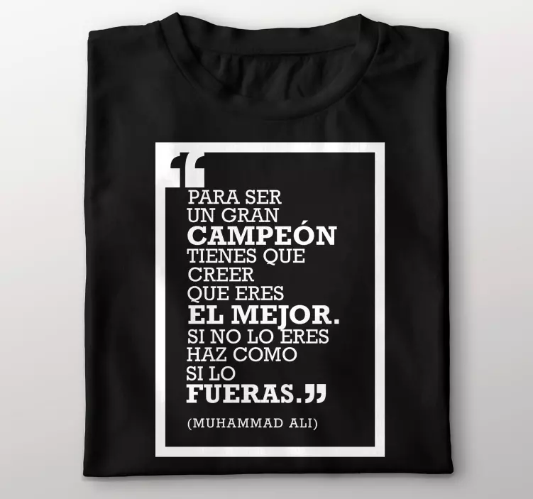 Consigue este diseño y utiliza una prenda de uno de los mejores boxeadores de todos los tiempos, Cassius Clay, mejor conocido como Muhammad Ali. El diseño presenta un dramático fondo blanco con comillas y una cita de Muhammad Ali en diferentes y elegantes fuentes. La camiseta está confeccionada con un cómodo tejido de algodón y viscosa, fresco y fácil de limpiar. Esta inspiradora camiseta de boxeo está disponible en diferentes tamaños. Elige el que mejor se adapte a ti y disfruta del look.