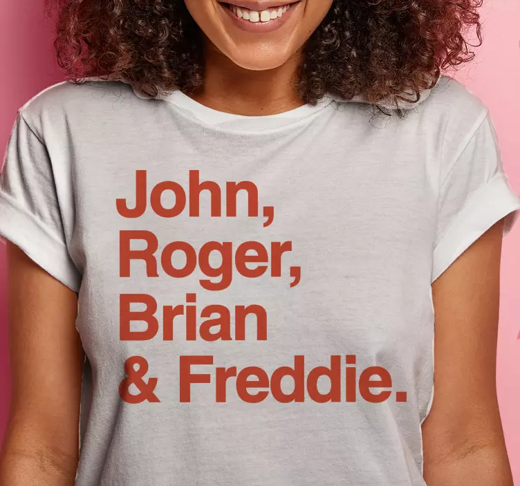 ¡Descubre nuestra camiseta personalizable nombres en negrita! Con un diseño tipográfico que destaca nombres de músicos famosos, esta camiseta es perfecta para quienes aman la música y quieren expresar su estilo. La combinación de elementos como reina, banda y amistad se entrelaza en un look casual que atraerá todas las miradas. ¡Personaliza tu texto y lleva contigo un pedazo de tu pasión!