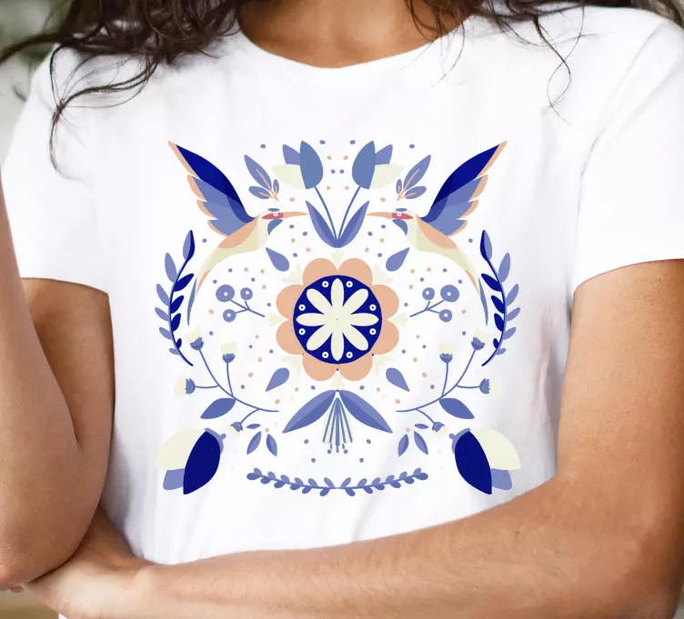 Remera motivo de pájaro floral