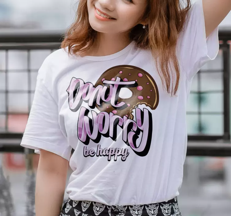 Referencia: T4298Esta pieza vibrante presenta un donut y un mensaje positivo que fomenta la felicidad. La redacción juguetona y los colores brillantes crean una atmósfera alegre, haciéndola perfecta para un atuendo casual. Ideal para quienes buscan una expresión ligera en su guardarropa.