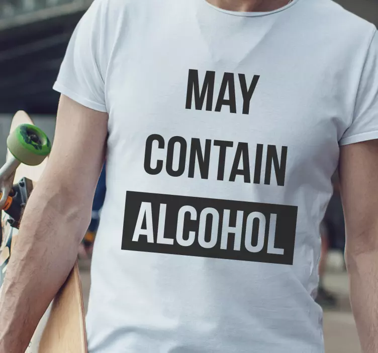 Referencia: T4304Esta pieza casual presenta una declaración audaz que advierte de manera humorística sobre el contenido de alcohol. Su tipografía llamativa capta la atención, convirtiéndola en un excelente iniciador de conversaciones para fiestas o reuniones informales.