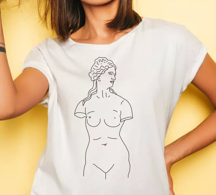 La remera silueta femenina elegante es una pieza excepcional que combina la esencia del arte antiguo con un diseño moderno. Su gráfico, inspirado en estatuas griegas y el arte lineal, presenta un retrato abstracto de una mujer que evoca la cultura y la belleza. Este estilo minimalista es perfecto para quienes buscan una prenda que destaque por su originalidad y sofisticación.