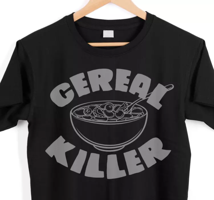 Descubre la remera tema amante de los cereales, una pieza única que combina humor y originalidad. Su diseño gráfico presenta un divertido cuenco de cereal, con un toque juguetón que incluye un texto gracioso y un retruécano sobre un asesino de cereales. Todo esto se destaca sobre un fondo negro, creando un contraste que no pasará desapercibido. ¡Perfecta para los amantes de la diversión y el buen humor!