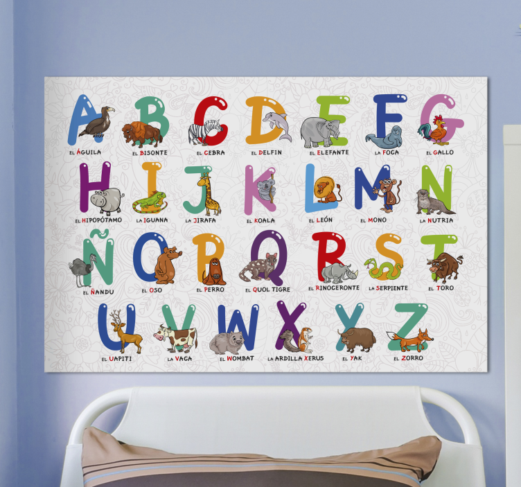 Referencia: Q513Cuadro de abecedario Alfabeto animal para guarderías y dormitorios infantiles