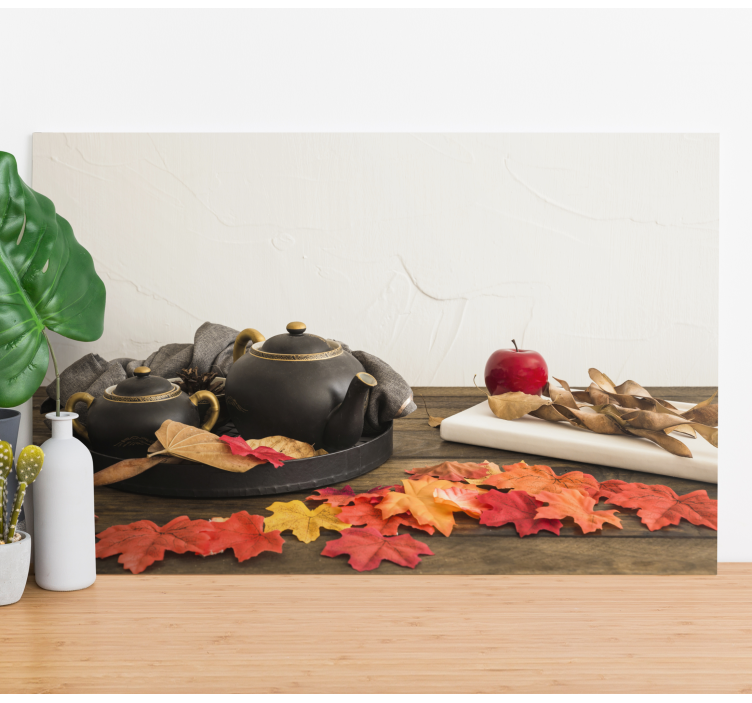 El Cuadro paisajes arreglo de té de otoño es una obra de arte que captura la esencia de los días frescos y acogedores del otoño. Con un diseño que presenta elegantes teteras, hojas doradas, una mesa rústica y una hermosa naturaleza muerta con manzanas, este cuadro evoca una sensación de calidez y nostalgia. Cada elemento se entrelaza con delicadeza, creando un ambiente perfecto para disfrutar de la belleza de la temporada.