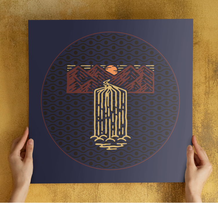 Referencia: Q7828Una composición relajante que presenta una cascada cayendo entre picos montañosos estilizados y un sol poniente. El diseño circular añade armonía, mientras que las líneas intrincadas evocan una sensación de tranquilidad y conexión con el mundo natural.