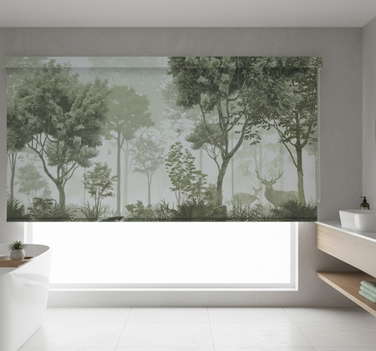 Cortina roller árboles escape a la naturaleza tranquila
