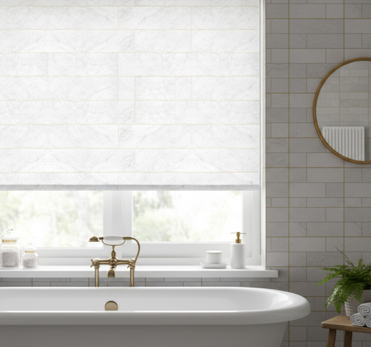 Cortina roller baño mármol dorado en tonos grises