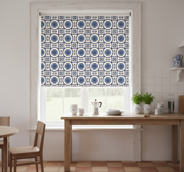Cortina roller cocina azulejo portugués flor azul