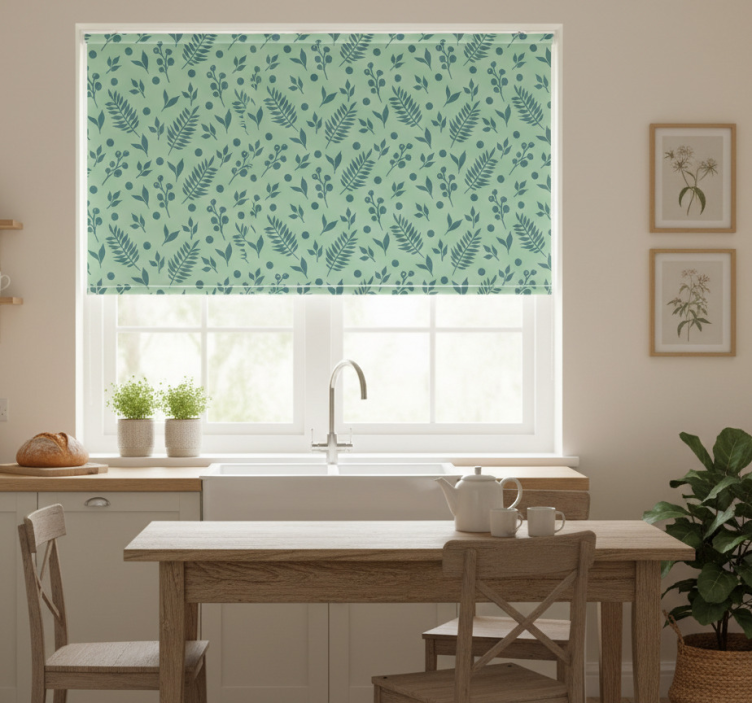 Cortina roller cocina hojas verdes sobre verde