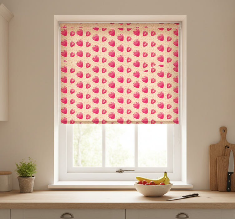 Referencia: E6426Transforma tu cocina en un espacio acogedor y alegre con la Cortina roller cocina patrón de fresas sobre beige. Este encantador diseño presenta un patrón vibrante de fresas que contrastan maravillosamente con un fondo beige suave, creando una atmósfera fresca y luminosa. Ideal para aquellos que buscan un toque de naturaleza y color en su hogar, esta cortina no solo es funcional, sino también un elemento decorativo que atraerá todas las miradas.