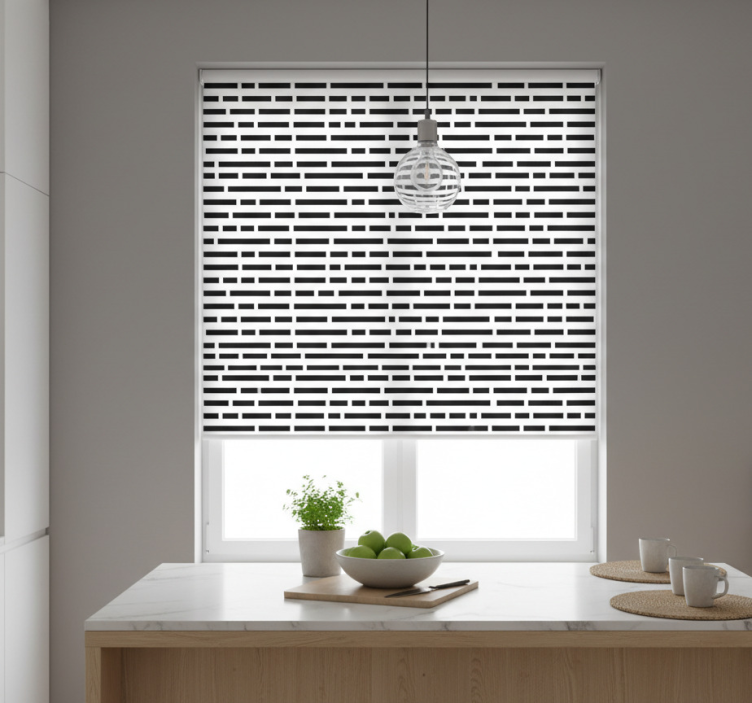 Cortina roller cocina rectángulos en blanco y negro