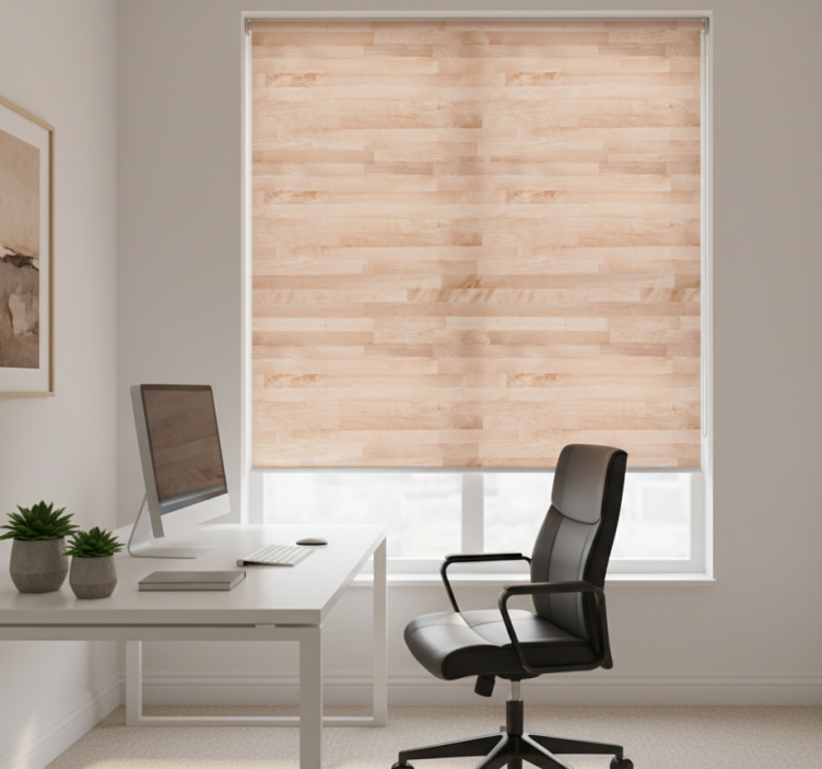 Cortina roller despacho tablón de madera marrón elegante