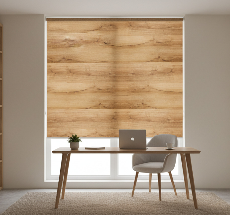 La Cortina roller despacho es la opción ideal para quienes desean crear un ambiente acogedor y sofisticado. Su diseño de tablones de madera beige rústico no solo mejora la estética de tu despacho, sino que también protege del sol y proporciona privacidad al bajar. ¡Es el complemento perfecto que transforma cualquier habitación en un espacio de trabajo inspirador!