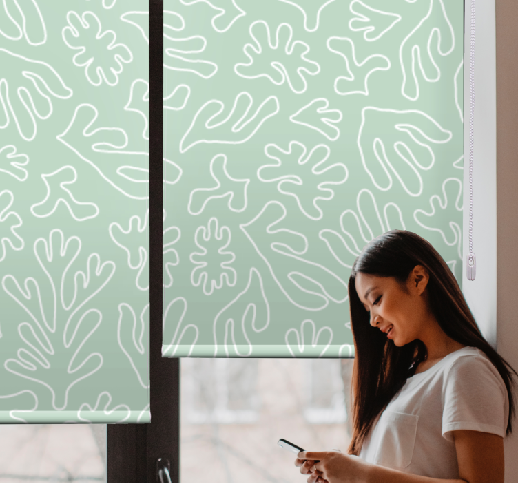 Descubre la belleza de la naturaleza en tu hogar con nuestra Cortina roller flores patrones de plantas con estilo. Este diseño único presenta un elegante garabateo que resalta siluetas de algas marinas y flores, creando un estampado que evoca la frescura de la naturaleza. Con patrones de plantas que capturan la esencia de un jardín vibrante, esta cortina es la elección perfecta para quienes buscan un toque natural y estilizado en su decoración.