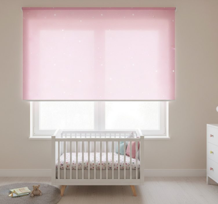 Cortina roller infantil estrellas blancas sobre fondo rosa
