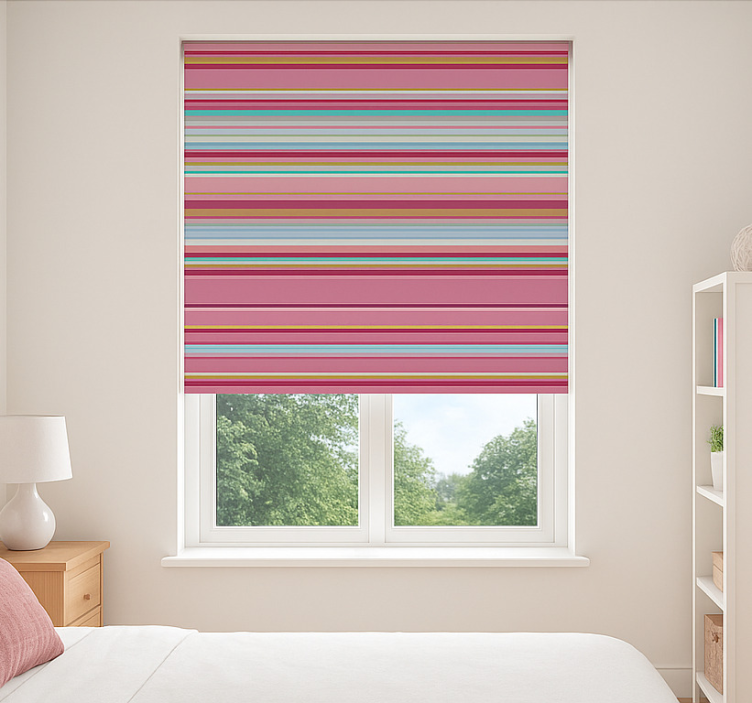 Cortina roller juvenil patrón de rayas rosas