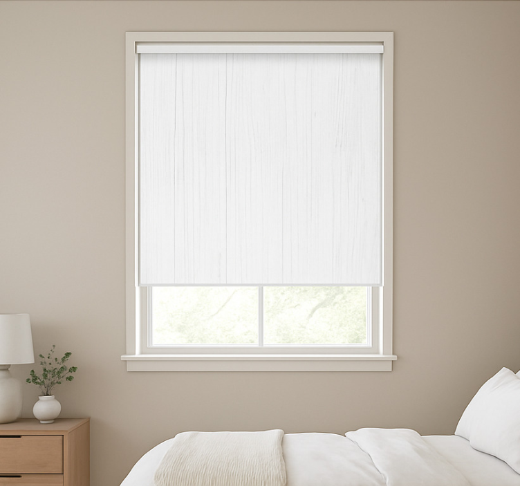 Cortina roller textura madera vertical blanca pura