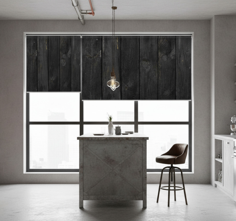 Cortina roller textura tablones de madera ébano quemado