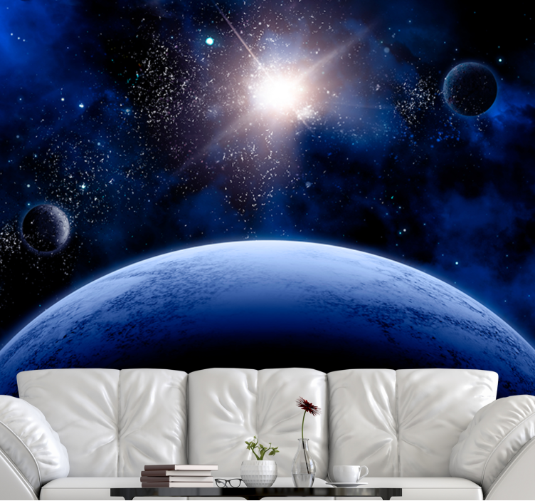 ¡Dale a tu dormitorio matrimonial un toque espacial y estético con nuestro fotomural de cielo con estrellas! Este producto ha sido creado pensando en la satisfacción del consumidor, con los mejores materiales disponibles. Nuestro mural contiene un planeta azul con pequeñas estrellas flotando alrededor, un sol con una mirada grandiosa y luminosa. ¡Ideal para añadir un toque moderno a su sala de estar, dormitorio, baño o incluso cocina!