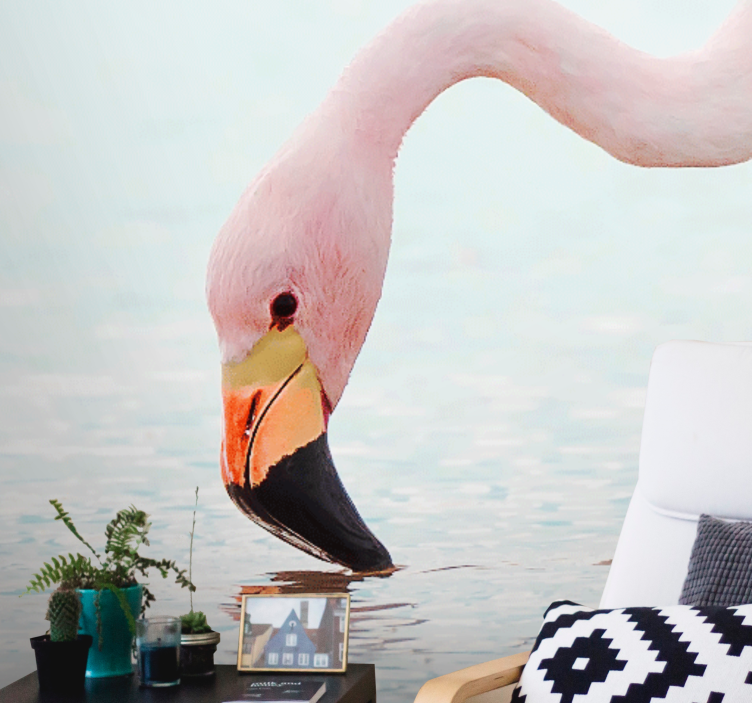 Mural de animales flamenco reflejo en el agua