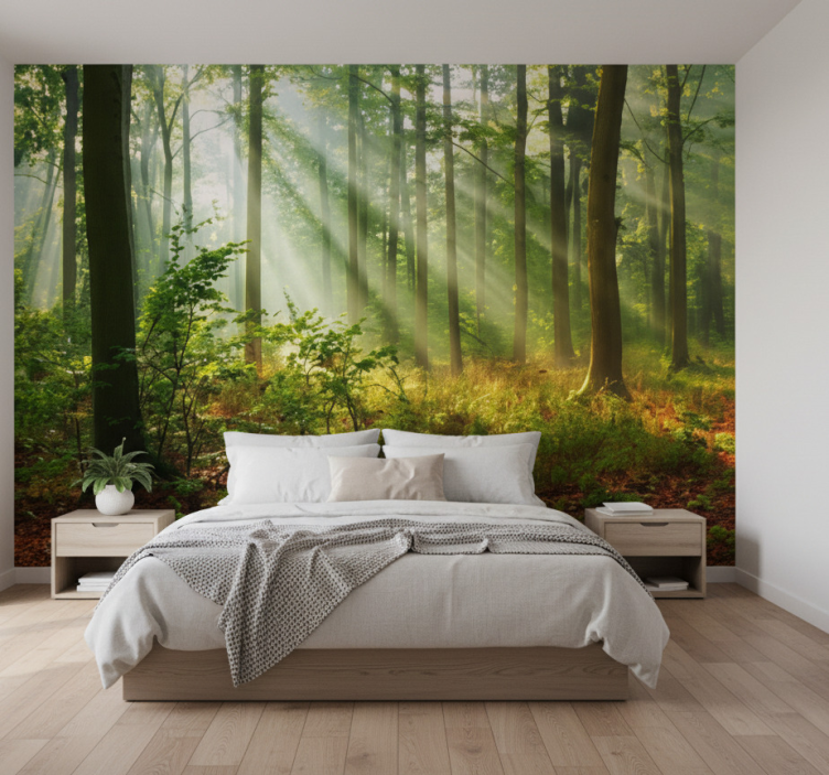 Aplicar el Mural de bosque arboleda bañada por el sol es sencillo y divertido. Solo necesitas cola para el papel tapiz, un rodillo, una brocha, un cepillo y un cúter. Con estas herramientas, podrás transformar tu pared en un paisaje idílico que encantará a todos. No olvides limpiar la superficie con un paño húmedo para asegurar una adhesión perfecta. ¡Es hora de dar vida a tu hogar!