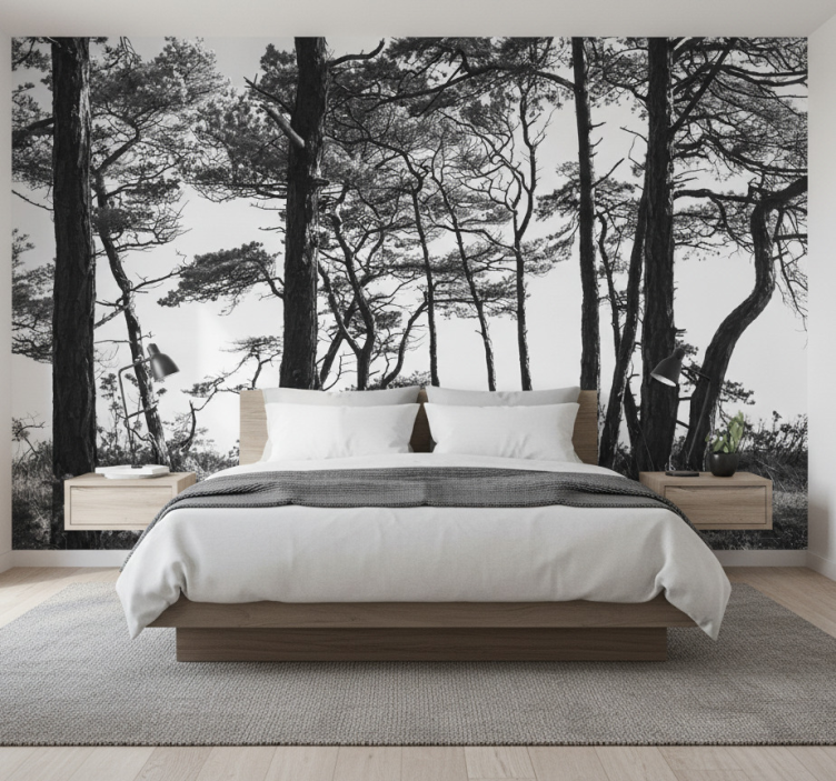 El Mural de bosque mural de bosque bosque de pinos en tinta es la elección perfecta para quienes buscan una forma inspiradora de adornar sus interiores. Este mural no solo embellece el entorno, sino que también crea una atmósfera relajante que invita a la contemplación. Imagina despertar cada día rodeado de la calma que proporciona un bosque, sintiendo que la naturaleza está a tu alcance. Es un elemento decorativo que transforma cualquier espacio en un refugio acogedor y lleno de vida.
