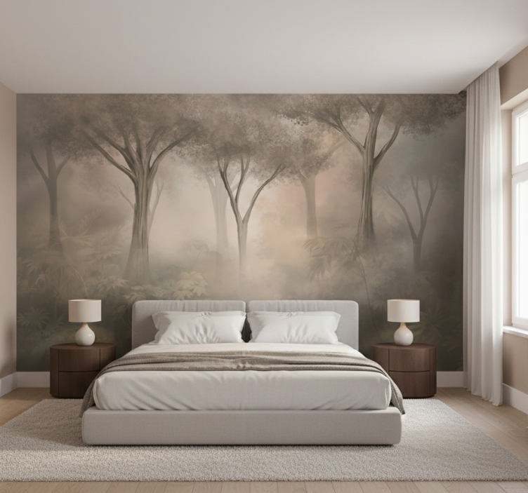 Mural de bosque bosques sepia brumosos