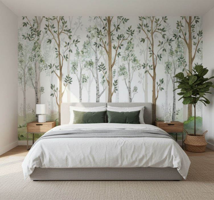 Mural de bosque detalle botánico minimalista
