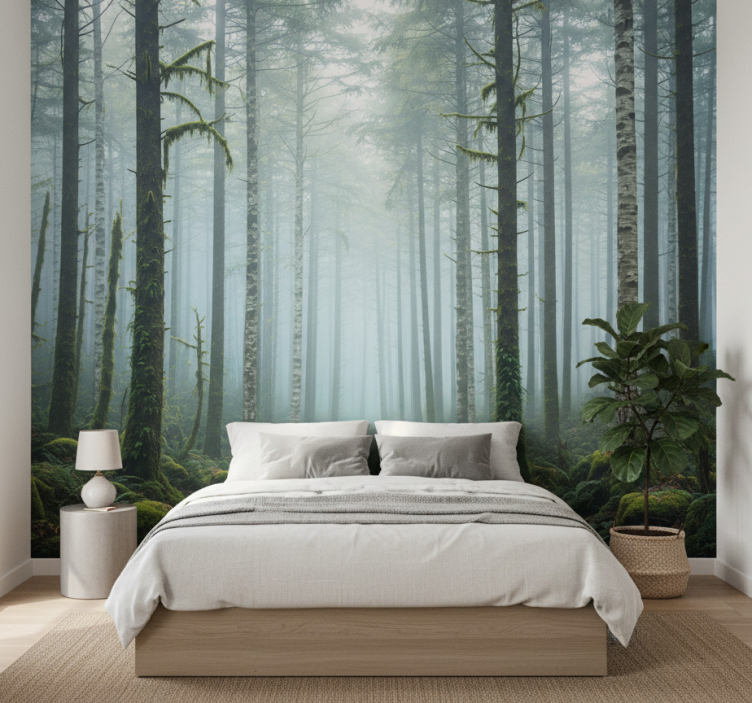 Mural de bosque neblina atmosférica