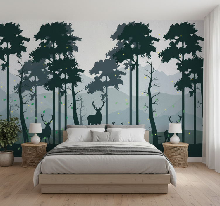 Mural de bosque silueta bosque escandinavo