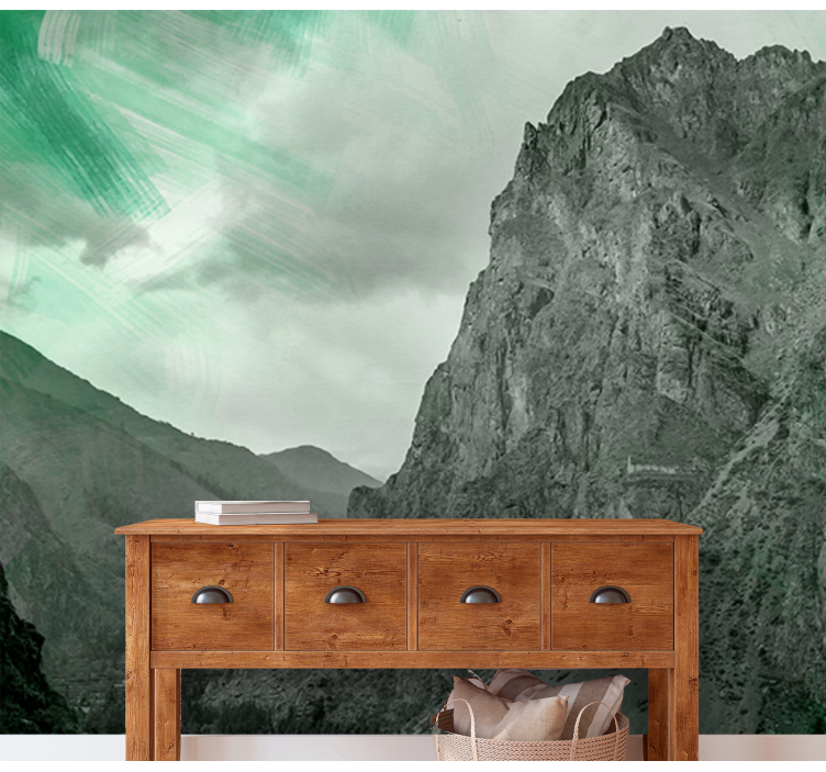 Mural de montañas majestuosas verdes