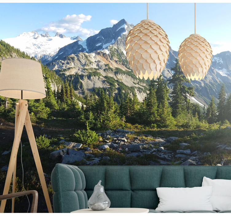 Descubre el encanto natural de nuestro Mural de paisajes vista de bosque montañoso, que te transportará a un mundo de serenidad y belleza. Este diseño cautivador presenta majestuosas montañas cubiertas de nieve, rodeadas de árboles frondosos que encapsulan la esencia de la naturaleza. Con un paisaje que evoca la tranquilidad de un bosque montañoso, este mural es perfecto para dar vida a cualquier espacio.