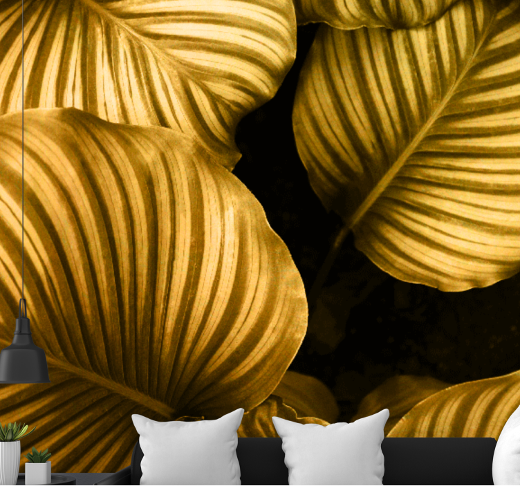 Mural flores patrones de hojas doradas
