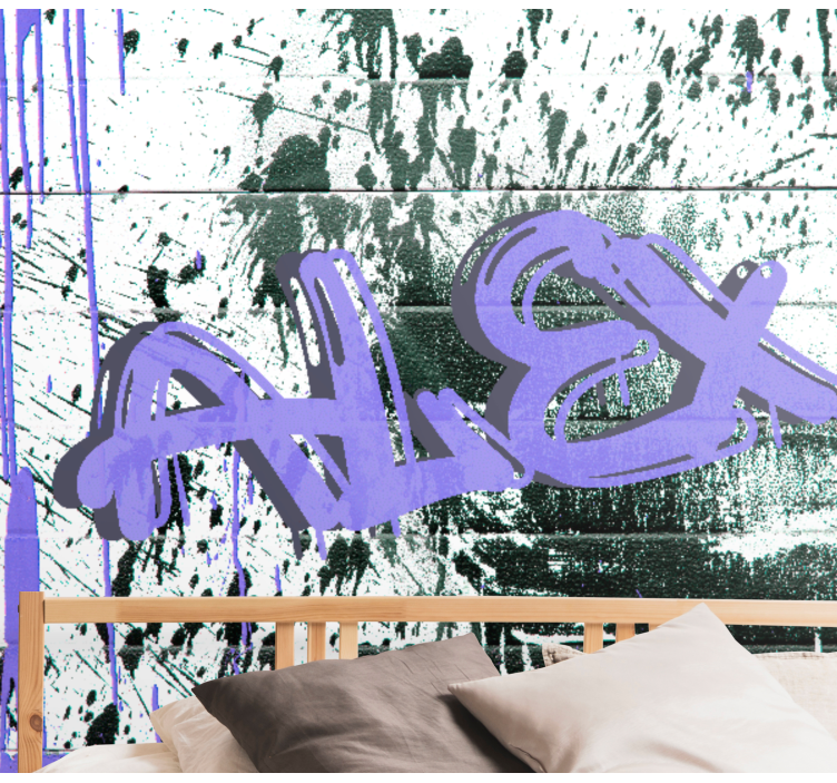 Referencia: F8741Un tag urbano vibrante que captura el nombre con una mezcla de salpicaduras y goteos, situado sobre un fondo texturizado. El diseño enfatiza la individualidad y la expresión personal, lo que lo hace ideal para quienes buscan un toque único en su espacio.