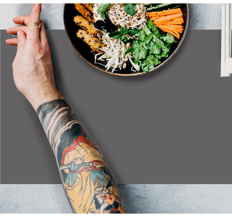 Descubre la belleza del Individual de mesa patrón diseño de platos de comida, que presenta un elegante diseño en tonos gris monocolor. Este producto destaca por su originalidad, con motivos que evocan alimentos frescos como vegetales y fideos, todo plasmado en una textura que recuerda a un tatuaje hecho a mano. Su aspecto visual es cautivador, ideal para realzar cualquier mesa con un toque moderno y sofisticado.