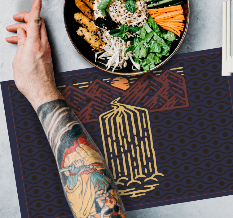 Descubre la Individual mesa original escena de cascada montañosa, una obra de arte que captura la esencia de la naturaleza. Este diseño gráfico muestra una hermosa cascada que fluye entre montañas africanas, con un estilo abstracto que invita a la contemplación. La fusión de colores y formas crea un ambiente artístico y relajante, perfecto para realzar cualquier espacio en tu hogar.