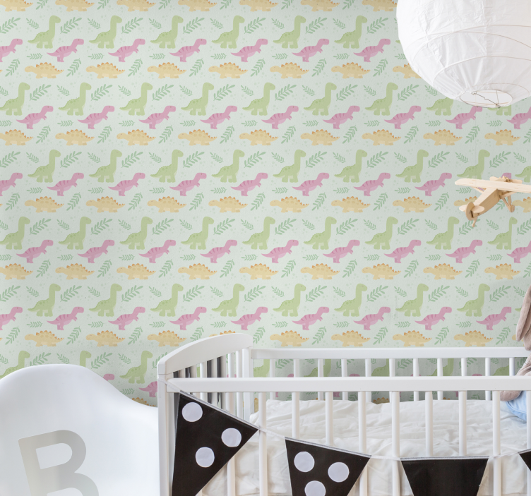 Referencia: P6439Un encantador patrón con divertidos dinosaurios en tonos pasteles ideal para el espacio de un niño. Este diseño incorpora dinosaurios lindos creando un ambiente suave y acogedor para desarrollar mentes imaginativas.