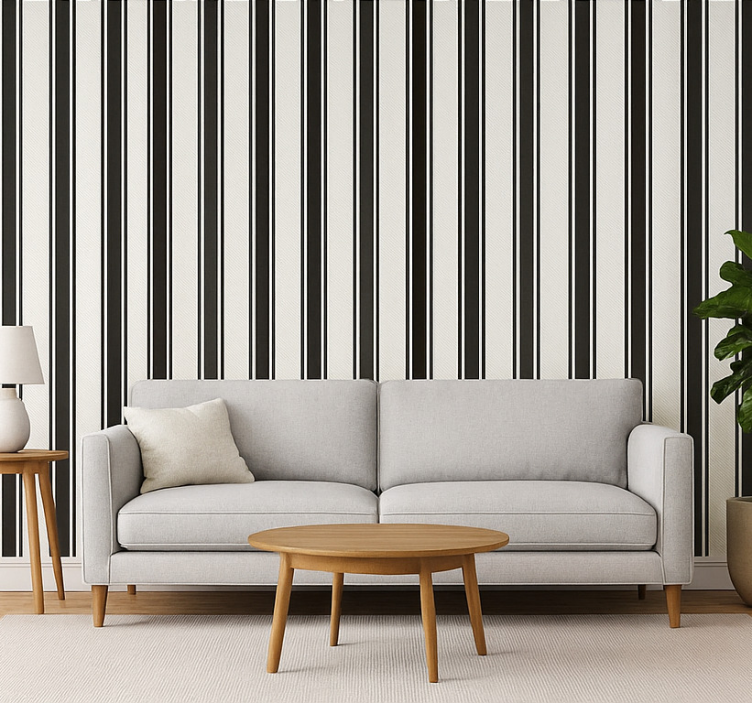 Papel tapiz para sala rayas vintage en blanco y negro