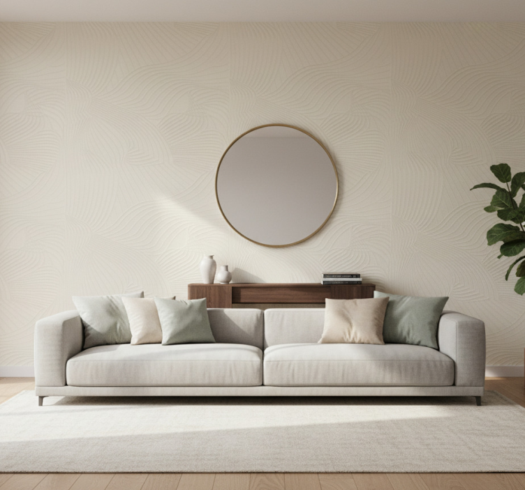 Papel tapiz para sala relieve ondulado crema