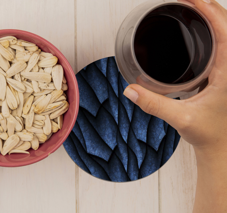 Descubre la belleza de nuestros posavasos patrón de olas texturizadas, un diseño que evoca la serenidad del océano. Con un estampado que recuerda a escamas en tonos azules, su textura abstracta y piel de ola aportan un toque artístico a cualquier espacio. Ideal para quienes buscan un detalle único que combine funcionalidad y estética, estos posavasos son el complemento perfecto para tu hogar.