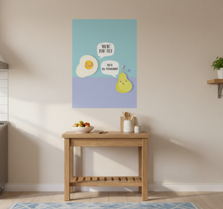 Para disfrutar de tu Poster para cocina huevo y pera juego de palabras, te recomendamos usar cinta adhesiva de doble cara en la parte posterior. También puedes enmarcarlo o utilizar chinchetas y blu-tack reutilizable para una aplicación sencilla y eficaz. ¡Hazlo brillar en tu pared!