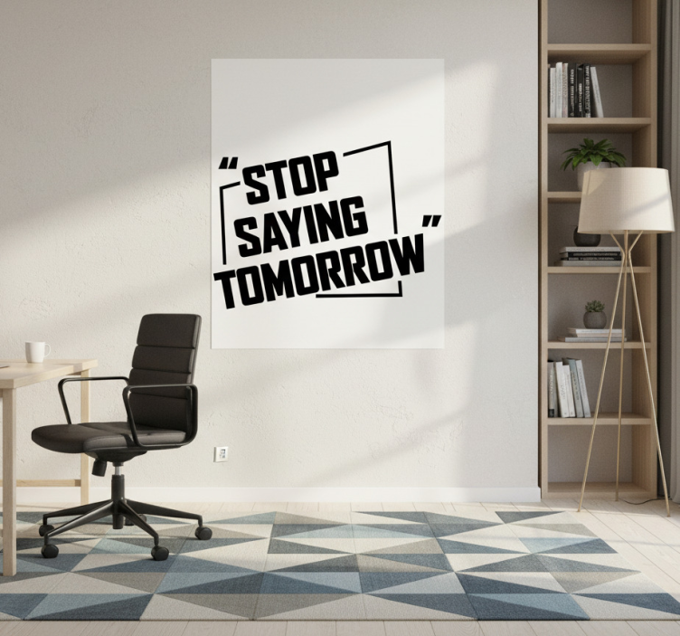 El Poster oficina deja de decir mañana es mucho más que una simple decoración; es una fuente de inspiración que te invita a actuar y a dejar de postergar. Colocarlo en tu espacio laboral no solo embellece el entorno, sino que también te motiva a cumplir tus metas. Su mensaje claro y directo resuena con aquellos que buscan un cambio en su rutina diaria. Transforma tu oficina en un lugar donde la acción y la creatividad fluyan con este poderoso recordatorio. ¡Haz que cada día cuente!