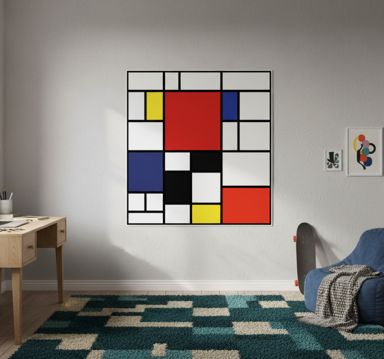 Para colocar el Poster salón bloques de color abstractos, la mejor opción es utilizar cinta adhesiva de doble cara en la parte posterior. También puedes optar por enmarcarlo, usando adhesivos más fuertes. Simplemente pega las tiras en la parte posterior y sostén cada tira firmemente durante 10 segundos. Las chinchetas y el blu-tack reutilizable son otras alternativas excelentes para exhibir tu obra con estilo.